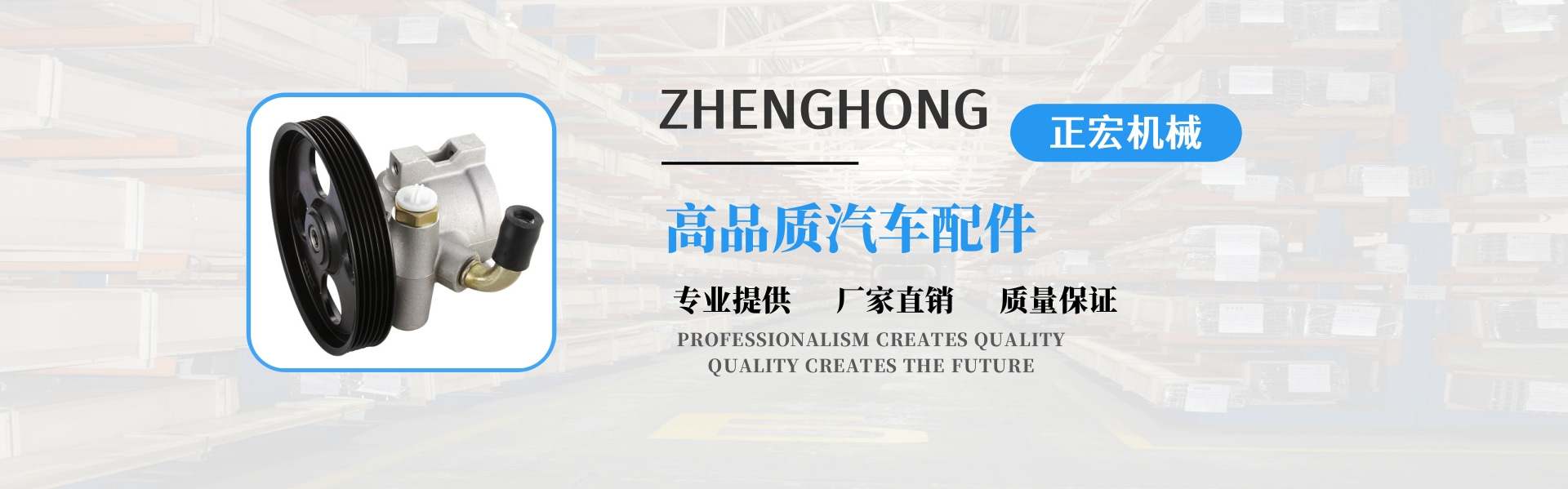 正宏機械有限公司成立于2004年,是一家新興的技術型企業,專業生產動力轉向泵。我們是一家集設計、生產、貿易于一體的專業公司,同時享有進出口權?! 」咀猿闪⒁詠?,堅持以技術為導向,以高起點為原點;把產品創新和質量管理放在首位。擁有國內先進的汽車動力轉向泵專業生產設備和檢測設備。憑借經驗豐富的技術團隊,我們已經設計了20多個系列,近數百個動力轉向泵。年產10萬臺。產品深受廣大客戶的信賴和好評,得到了廣大客戶的認可。